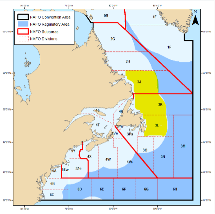 Carte des zones de l’Organisation des pêches de l’Atlantique Nord-Ouest (OPANO)